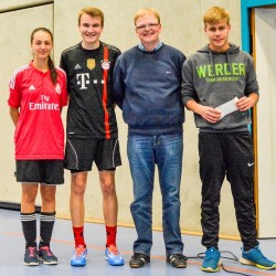 Mit je acht Toren holten sich Kreisliga-Kicker Bernd Buschermöhle (Bayern) und der B-Jugendliche Mika Rolfsen (St. Petersburg) die Torjägerkanone, das Pendant bei den Damen verdiente sich Landesliga-Spielerin Ümran Sert (Real Madrid). Als DJs, die durch ihre Mucke bei den zwei „Crazy Minutes“ für die Doppelwertung der Tore sorgten, machten sich Julian Neitzel und Marques da Silva verdient. Ein großes Lob ging an die souveränen Schiris Thomas und Peter Buschermöhle sowie an Spielleiter und Hallensprecher Stephan Krämer. So erlebte die TuS-Familie eine ereignisreiche Champions League, die bis weit nach Mitternacht in der Cafeteria aufgearbeitet werden musste. Und sie weckte Vorfreude auf die SgH Dreikönigswanderung am Samstag (9. Januar). Start: 13.00 Uhr.