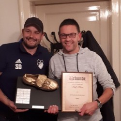 Eine Woche später gab es im Vereinslokal Seep unsere alljährliche Generalversammlung. Bei insgesamt 26 (!!!) Teilnehmern wurde durch unseren Kapitän Sascha zuerst unsere Gina standesgemäß mit einem Blumenstrauß bedacht und später als Spieler des Jahres 2018 unser Sportkamerad Ralf Marz mit der neuen „Goldenen Trophäe“ ausgezeichnet. Wir wurden hervorragend bewirtet und der Abend wurde noch sehr lang…