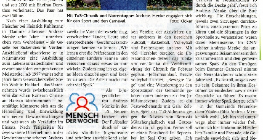 In der heutigen Ausgabe der OV am Sonntag, wurde unser 1. Vorsitzender Andreas Menke vorgestellt.