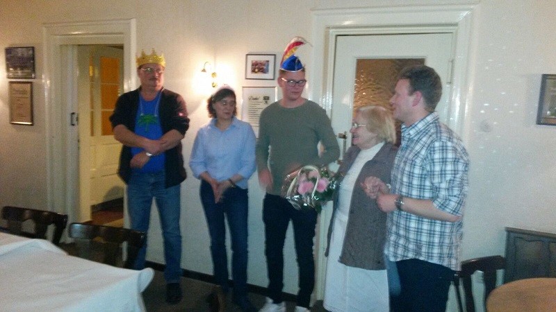 Zum diesjährigen Grünkohlessen hatte das Orgateam (Christoph und Mini) die TuS Info eingeladen, die der Einladung spontan und zahlreich folgten - dafür herzlichen Dank. Nach einer kurzen Begrüßung durch Christoph konnte dann auch mit dem Verspeisen der Köstlichkeiten begonnen werden. Dabei wurde jedem sofort klar, wer die Anwärter auf die begehrte Grünkohlkönigskrone sein werden. Im Prinzip eine leichte Entscheidung in der sich Andreas Steinbach als König, Manuela Uchtmann als Königin und Dominik Schulte als deren Hofnarr als würdige Nachfolger des alten Königspaares erwiesen.