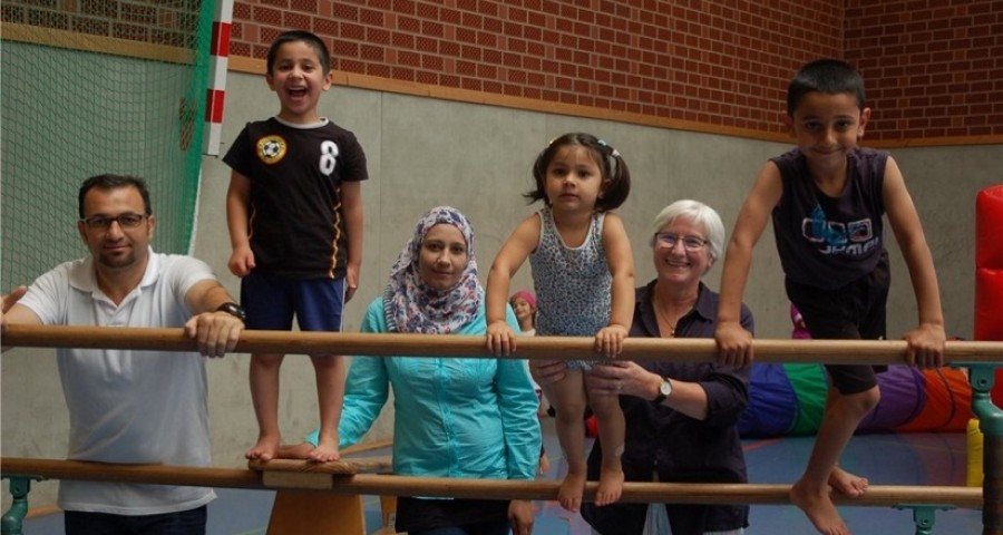 Eine dieser Integrationspaten ist Maria Purtik . Die Neuenkirchnerin betreut seit Januar die fünfköpfige Familie Mousa aus Syrien, die ebenfalls zur Sporthalle gekommen ist- besonders die drei Kinder haben ihren Spaß. „Es ist ein tolles Angebot, sie fühlen sich wirklich sehr willkommen hier!“, sagt Purtik. „Es ist schön mit anzusehen, wie die Kleinen neue Freunde finden.“