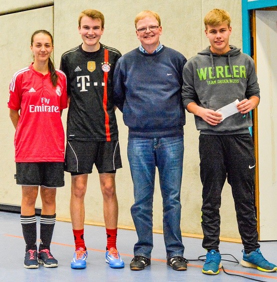 Mit je acht Toren holten sich Kreisliga-Kicker Bernd Buschermöhle (Bayern) und der B-Jugendliche Mika Rolfsen (St. Petersburg) die Torjägerkanone, das Pendant bei den Damen verdiente sich Landesliga-Spielerin Ümran Sert (Real Madrid). Als DJs, die durch ihre Mucke bei den zwei „Crazy Minutes“ für die Doppelwertung der Tore sorgten, machten sich Julian Neitzel und Marques da Silva verdient. Ein großes Lob ging an die souveränen Schiris Thomas und Peter Buschermöhle sowie an Spielleiter und Hallensprecher Stephan Krämer. So erlebte die TuS-Familie eine ereignisreiche Champions League, die bis weit nach Mitternacht in der Cafeteria aufgearbeitet werden musste. Und sie weckte Vorfreude auf die SgH Dreikönigswanderung am Samstag (9. Januar). Start: 13.00 Uhr.