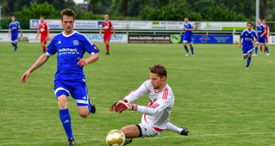Der Turnierfavorit hat sich durchgesetzt, aber er musste ein wenig das Wetter bemühen. Fußball-Oberligist TuS Bersenbrück wurde beim 6. Niedersachsenpark-Cup in Neuenkirchen Sieger in der Gruppe B und trifft damit im Turnierfinale am Freitag (22. Juli) um 20.15 Uhr auf Bezirksligist RW Damme. Im kleinen Finale um Platz drei stehen sich zuvor ab 18.30 Uhr Gastgeber TuS Neuenkirchen aus der Kreisliga und der Osnabrücker Bezirksligist SC Rieste gegenüber. Es wird über die volle 90-Minuten-Distanz gespielt.