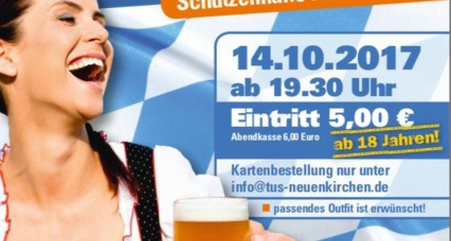 Der TuS Neuenkirchen richtet sein 3. Oktoberfest aus. Am 14.10.2017 ab 19.30 Uhr in der Schützenhalle Hinnenkamp heisst es dann wieder "o`zapft ist".
