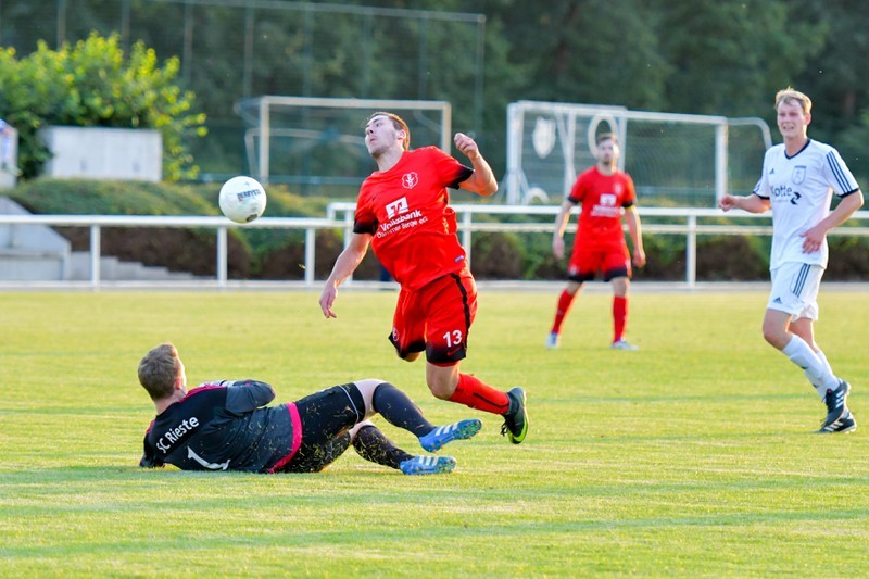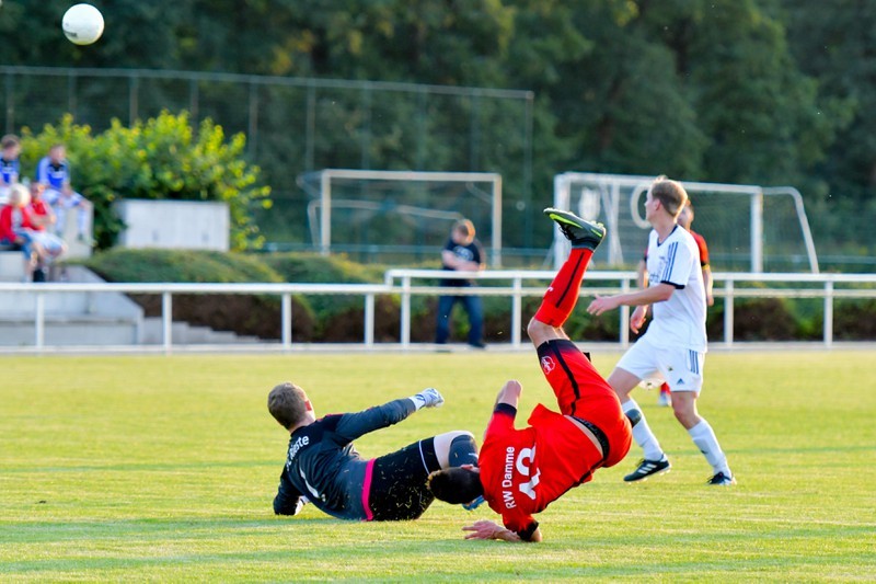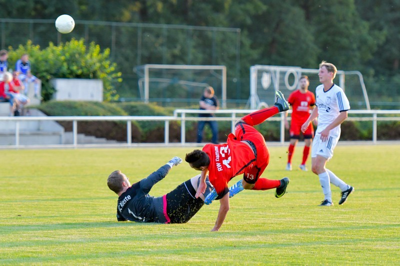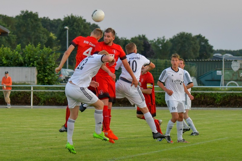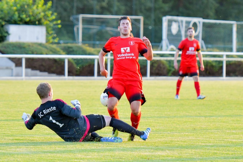 Danach verflachte das Spiel ein wenig, der SCR beschränkte sich mehr aufs Verwalten und Damme kam immer besser in das Spiel, konnte sich aber bis zum Halbzeitpfiff keinen nennenswerte Torchance erarbeiten. Anders dann nach dem Seitenwechsel, Damme drängte immer mehr auf den Anschlusstreffer und hatte durch Tom Ungemach (47.) die Riesenchance, doch Riestes Torwart Matthias Grüter klärte glänzend und lenkte mit einer Hand den Ball übers Tor. Schließlich war es dann Sebastian Schimpf, der eine glänzende Vorarbeit von Ungemach zum 1:2 (54. Minute) nutzte.