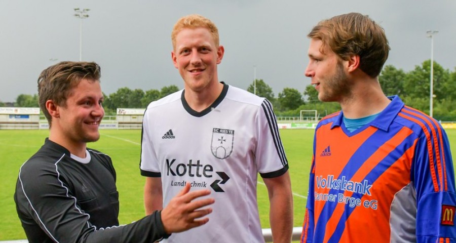 Somit musste eine Entscheidung her, wie es am kommenden Freitag weitergehen soll. Gastgeber TuS Neuenkirchen hat auf eine Teilnahme des Finales verzichtet, so dass ein Münzwurf zwischen dem SC Rieste und dem SV Holdorf entscheiden musste. Hier hatte der Kapitän der Riester das größere Glück und somit steht der SC Rieste im Finale und der SV Holdorf spielt um Platz 3+4.