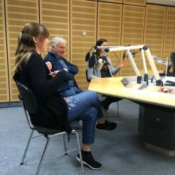 Klaus Buschermöhle, Lena Timphaus und Carolin Kreutzmann stellen die Arbeit des Projektes "Bewegte Tage" aus Neuenkirchen-Vörden in der Plattenkiste vor.