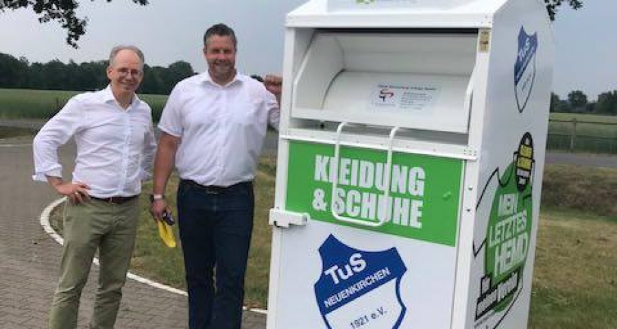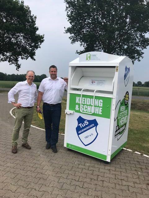 Der Vereinscontainer steht jetzt auch beim niedersächsischen TuS Neuenkirchen. Der Verein aus dem Kreis Vechta hat mehr als 1.000 Mitglieder, eine tolle Anlage und ein gutes Sportförderkonzept. Da kommt eine zusätzliche Einnahme durch den Vereinscontainer sehr gelegen, freute sich der 2. Vorsitzende Frank Schlarmann bei der Übergabe mit JOBA Geschäftsführer Kai-Uwe Jobst.
