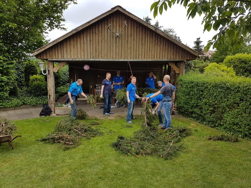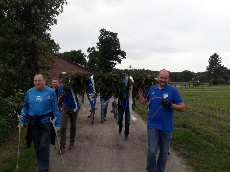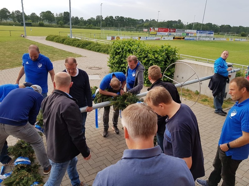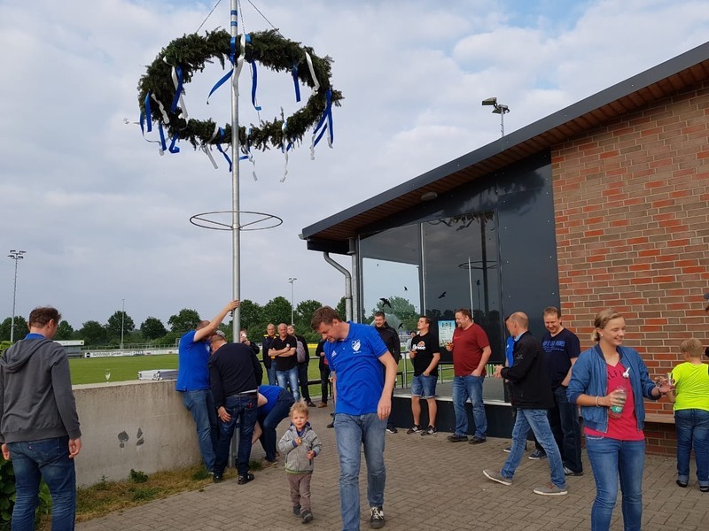 Zu einem vollen Erfolg wurde das Pfingstbaumsetzen des TuS Neuenkirchen am vergangenen Samstag. Bereits am Nachmittag begannen die Alten Herrenfußballer mit den Vorbereitungen in der Partyhütte von Sascha Dirla. Anschließend marschierten sie mit Kind und Kegel zum pias-Sportpark, wo der toll geschmückte Baum einen würdigen Platz erhielt. Weitere Gäste aus den anderen Abteilungen und Mannschaften des TuS stießen am Abend dazu. Während des Abends wurde dann gemeinsam das DFB-Pokalfinale draußen und drinnen verfolgt. Und anschließend feierte man bis in den frühen Morgenstunden eine gemeinsame Pfingstparty.