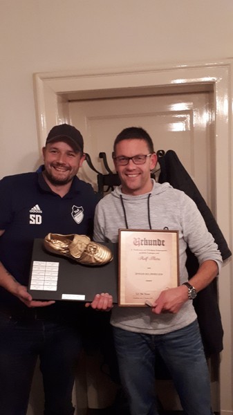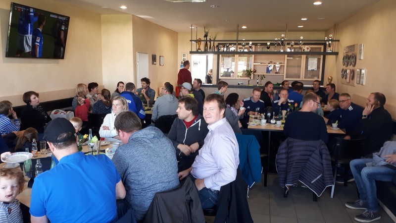 Eine Woche später gab es im Vereinslokal Seep unsere alljährliche Generalversammlung. Bei insgesamt 26 (!!!) Teilnehmern wurde durch unseren Kapitän Sascha zuerst unsere Gina standesgemäß mit einem Blumenstrauß bedacht und später als Spieler des Jahres 2018 unser Sportkamerad Ralf Marz mit der neuen „Goldenen Trophäe“ ausgezeichnet. Wir wurden hervorragend bewirtet und der Abend wurde noch sehr lang…
