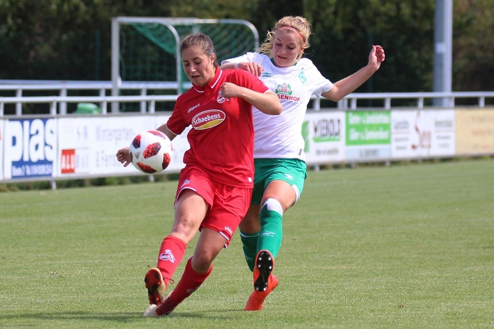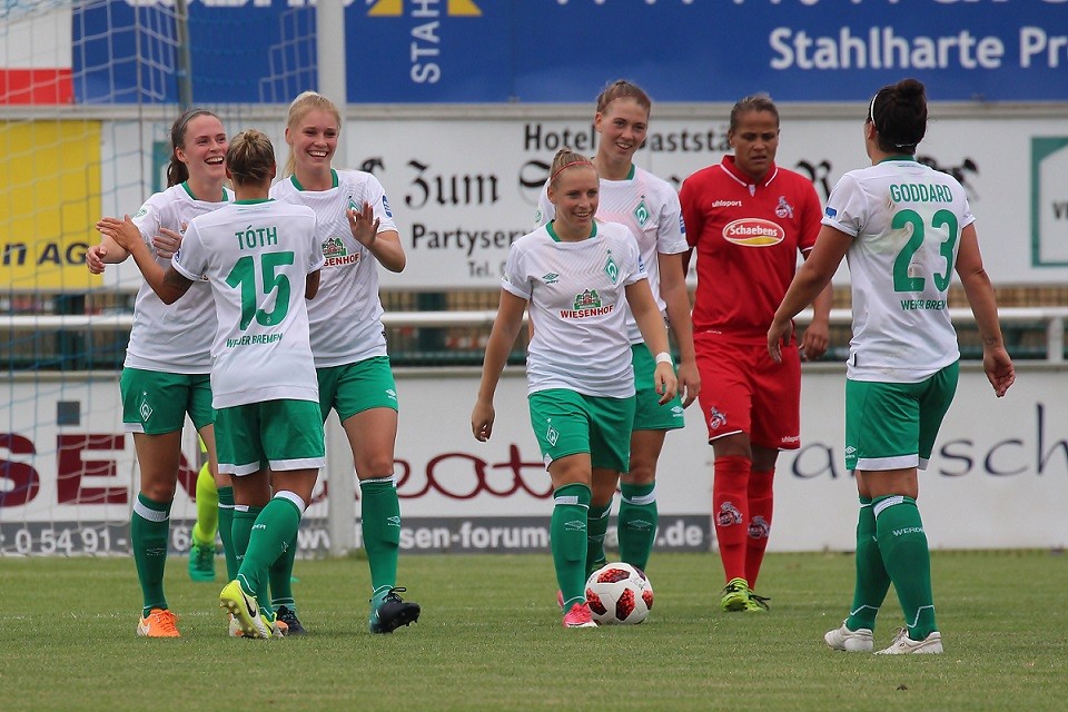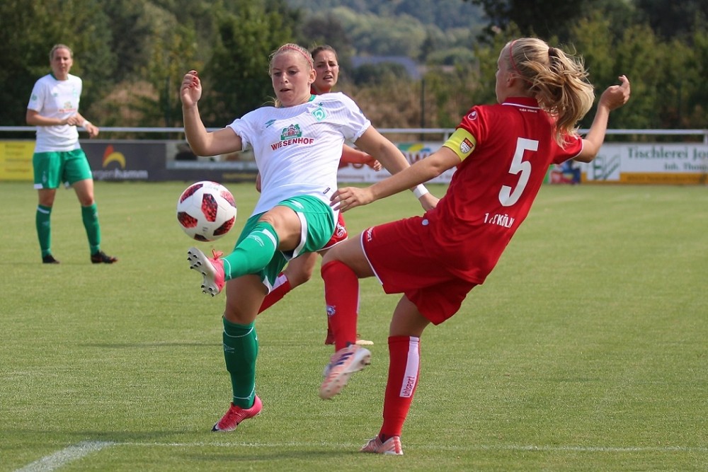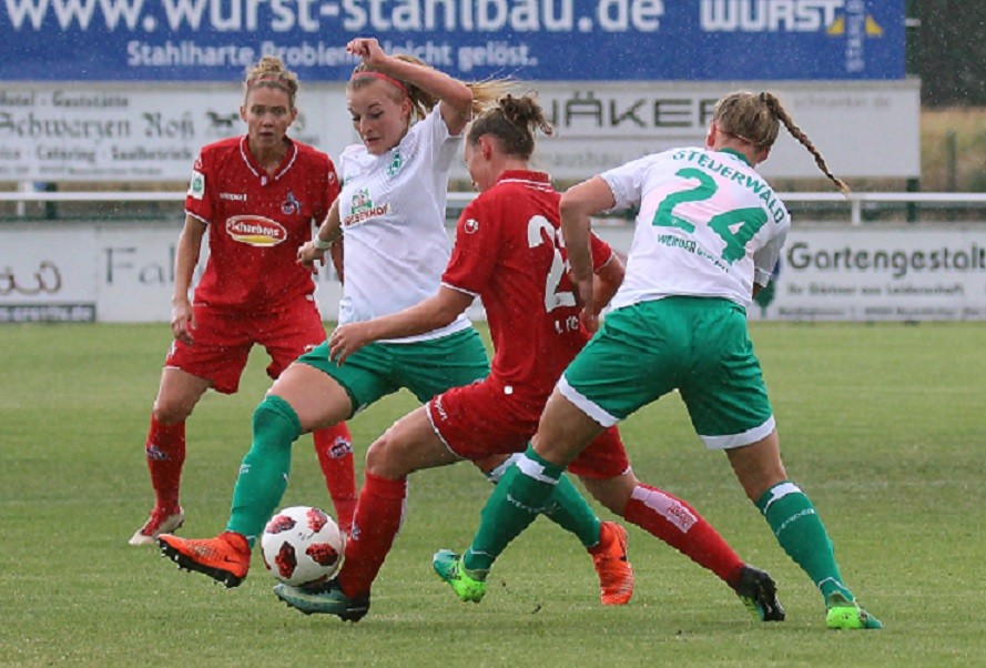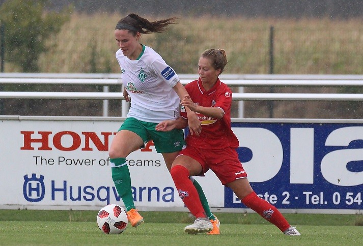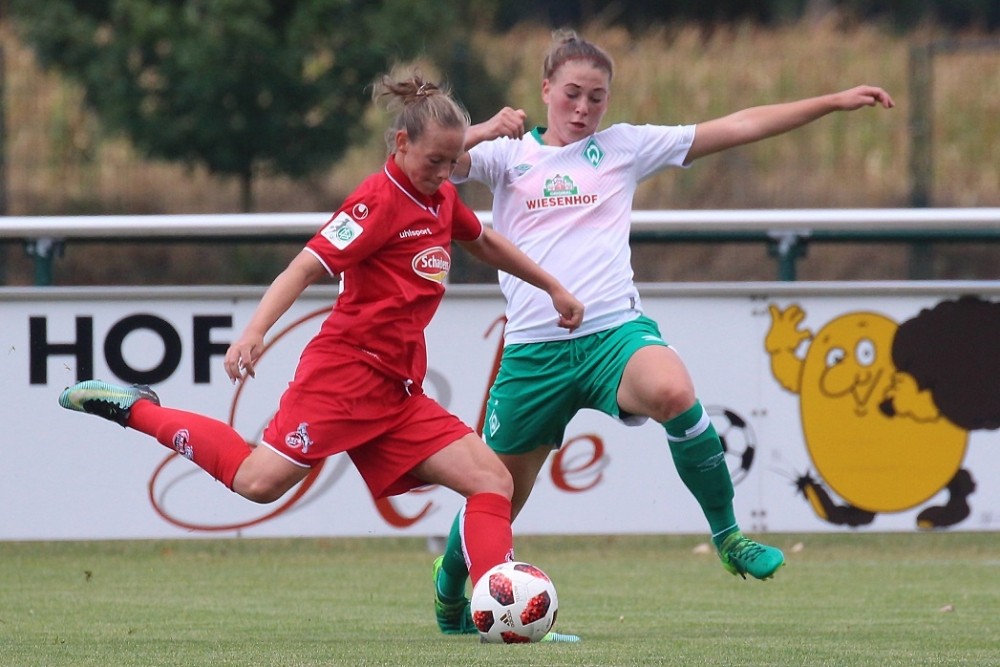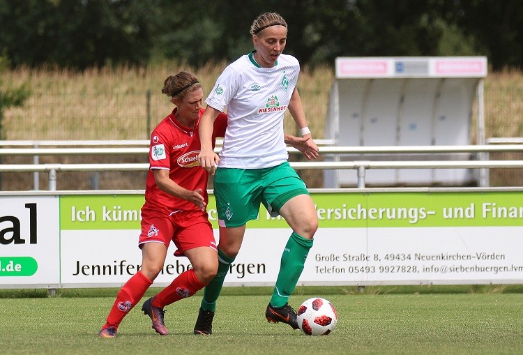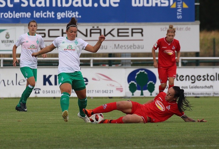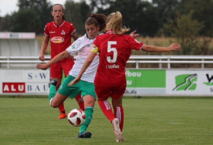 Ein attraktives Frauenfußballspiel fand heute Nachmittag im pias-Sportpark statt. Es standen sich Erstligist SV Werder Bremen und der 1. FC Köln aus der zweiten Bundesliga gegenüber. Am Ende siegte Werder Bremen souverän mit 4:0. Hier ein Spielbericht von WERDER.DE: