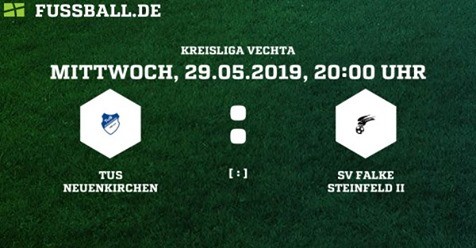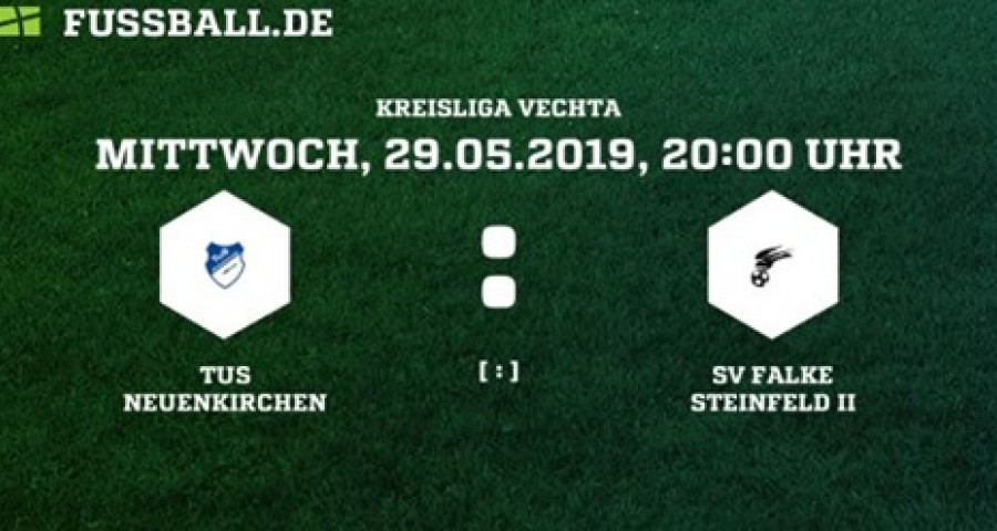 Das letzte Saisonspiel der 1.-Fußball-Herrenmannschaft wird auf Mittwoch, 29.05.2019 um 20.00 Uhr vorgezogen. Gegner ist dann die Reserve vom SV Falke Steinfeld.