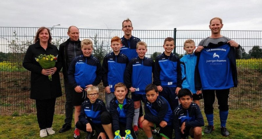 Die Fußballer der 1. E-Jugend des TuS Neuenkirchen wurden mit neuen Trainingsjacken ausgestattet, Die Mannschaft mit den beiden Trainern Mike Grigo und Jens Hüdepohl bedankt sich recht herzlich bei der Firma Jürgen Hamm - Raumideen-, Westerhauser Str. 9, 49434 Neuenkirchen -Vörden für die Unterstützung.