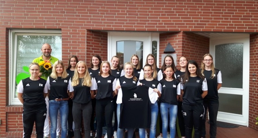 Die B-Juniorinnen der JSG Damme-Neuenkirchen wurden nun zur neuen Saison mit Aufwärmshirts von der Zahnarztpraxis Carsten Tischler, Mühlenstr. 12, 49401 Damme ausgestattet.