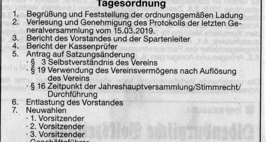 Einladung zur Generalversammlung