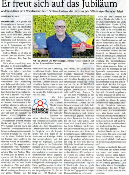 In der heutigen Ausgabe der OV am Sonntag, wurde unser 1. Vorsitzender Andreas Menke vorgestellt.