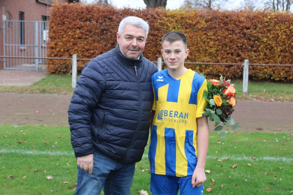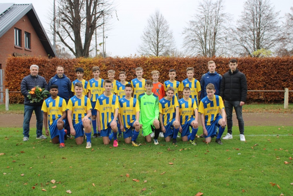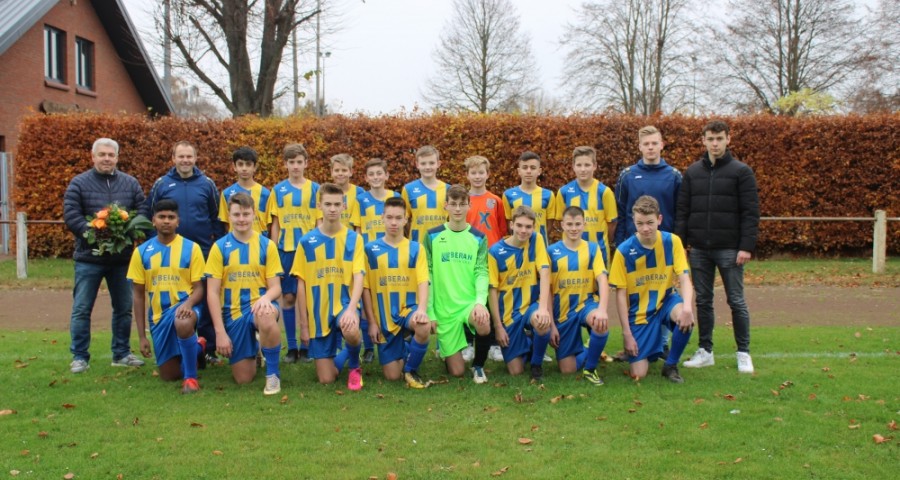 Auch die 1. C-Jugend der SG Neuenkirchen-Vörden wurde mit neuen Trikots ausgestattet. Die Mannschaft mit ihren beiden Trainern Christian de Joung und Maxi Beran bedankt sich recht herzlich bei Thomas Beran von der
