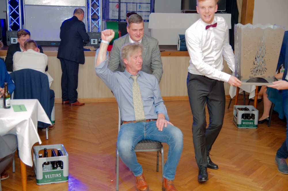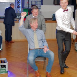 Zum Abschluss des offiziellen Teils des Abends betätigte sich Gisela Vocke als Glücksfee und zog mit Andreas Menke die Gewinner der Tombola. Frank Schwermann, der Trainer der 1. Fußballherren, freute sich über einen nagelneuen Dampfstrahler. Damit kann er in Zukunft noch mehr Druck in der Kreisliga machen. Aber der Hauptgewinn, ein Flachbildfernseher, ging an Malte Punte.