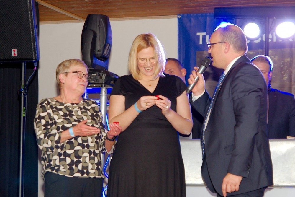 Zwischen etlichen Schunkelrunden nutzte Andreas Menke die Gelegenheit, an das 10-jährige Jubiläum der Zugvögel im letzten Jahr zu erinnern. Er habe selber erfahren dürfen, um was für eine lustige Gruppe es sich bei den reiselustigen Damen handelt. Damit sie auf ihren vielen Zugreisen immer den Weg zurückfinden, überreichte er ihnen rote herzförmige Blinkis mit der Aufschrift „Die Zugvögel“.