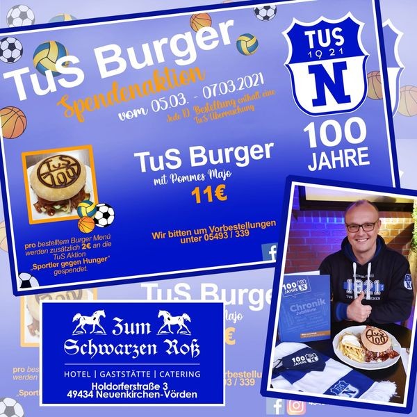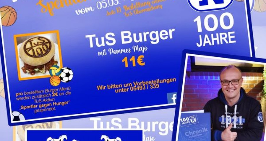 Bei jeder Bestellung des TuS- Burger Menü werden 2€ an die Aktion Sportler gegen Hunger gespendet!