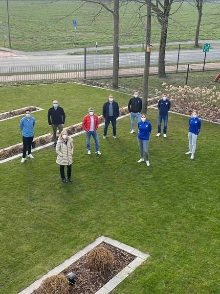 Auf dem Foto: Nicole und Ali Karadag, die Mitarbeiter der Firma TexFortis sowie das Orga-Team und der 1. Vorsitzende Andreas Menke vom TuS Neuenkirchen.
