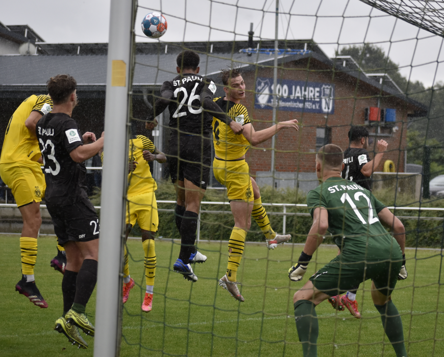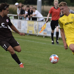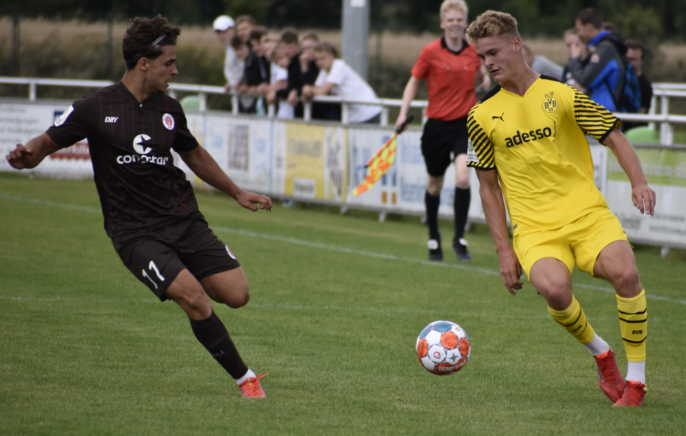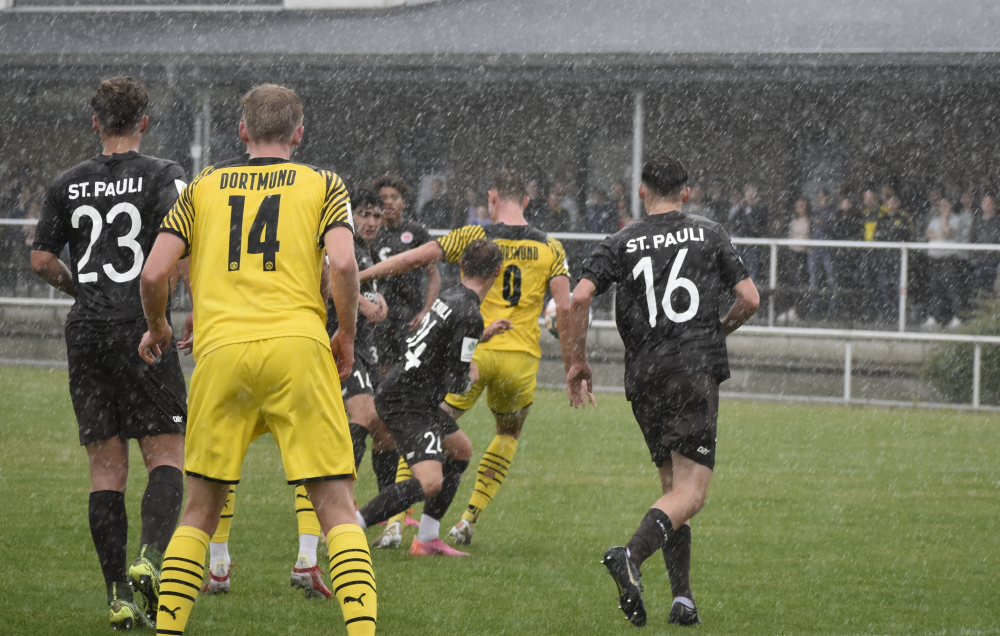 Ein Hauch von Bundesliga lag heute Nachmittag über dem PIAS-Sportpark. Vor einer stattlichen Kulisse standen sich kurz vor Saisonbeginn, die U19-Mannschaften des FC St. Pauli und Borussia Dortmund gegenüber. Dabei kamen die Zuschauer voll auf ihre Kosten und sahen ein torreiches Match, welches letztendlich der BVB mit 9:3 Toren für sich entscheiden konnte.