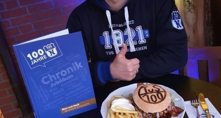 Dass der Burger anders als alle anderen ist, wird schon auf den ersten Blick deutlich. In das Weizenbrötchen ist der Schriftzug „TuS/100“ eingebrannt. Belegt ist der Burger mit einem Rindfleisch-Patty, Bacon, Tomaten, Salat, einer Burgersauce und einer weiteren würzigen Creme. Andreas Menke durfte das Menü bereits im Vorfeld testen und zeigt sich davon begeistert: „Das ist ein wirklich toller Burger. Ich glaube, alle, die sich einen bestellen, werden es nicht bereuen.“ Vorbestellungen werden telefonisch unter 05493/339 entgegen genommen.