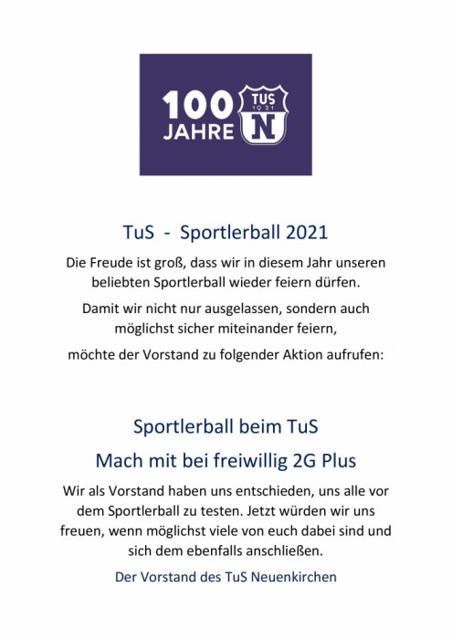 Sportlerball beim TuS – Mach mit bei freiwillig 2G Plus