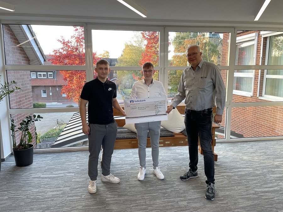 Doch neben den ganzen sportlichen Erfolgen bewiesen Spieler und Betreuer der Mannschaft auch eine ausgeprägte soziale Kompetenz. Beeindruckt von den Nachrichten und Bildern aus den Kriegsgebieten der Ukraine wurde mannschaftsintern der Beschluss gefasst, eine Spendensammlung für ukrainische Flüchtlinge ins Leben zu rufen. Über Sammlungen bei Eltern, Verwandten und Freunden, aber auch über eigene Spenden der Beteiligten kam dadurch ein Betrag von 1.088,- Euro zusammen, den Jonathan Beran, Jerome Niepel und Trainer Andreas Reilmann nunmehr an Bürgermeister Ansgar Brockmann überreichen konnten.