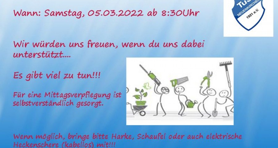 Im Hinblick auf den OM-Cup (02./03.07.2022) soll ein erster, großer Arbeitseinsatz im PIAS-Sportpark gestartet werden.