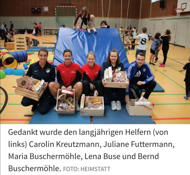 Gedankt wurde den langjährigen Helfern (von links) Carolin Kreutzmann, Juliane Futtermann, Maria Buschermöhle, Lena Buse und Bernd Buschermöhle. FOTO: HEIMSTATT