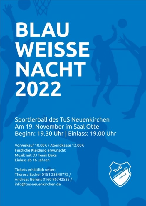 Die Blau-Weisse Nacht 2022 wirft ihren Schatten voraus. Am 19.11.22 ab 19.30 Uhr ist es soweit.