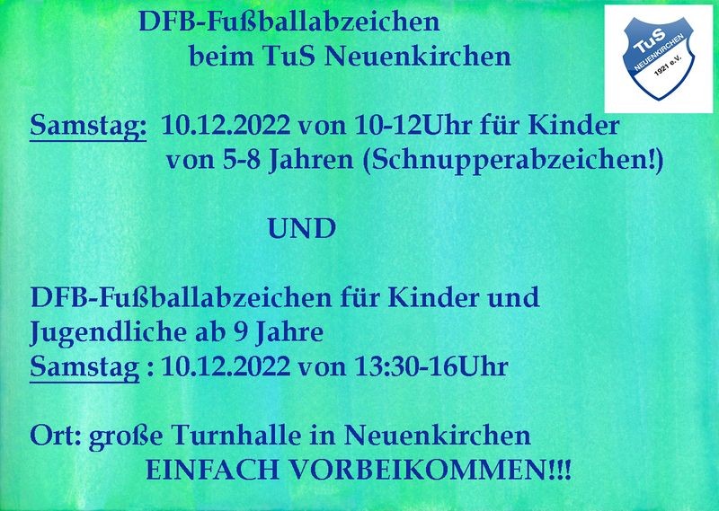 Am Samstag, 10.12.2022 bietet die Fußball Jugendabteilung des TuS Neuenkirchen Kindern und Jugendlichen an,