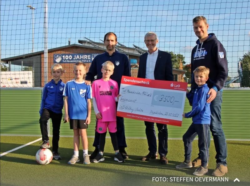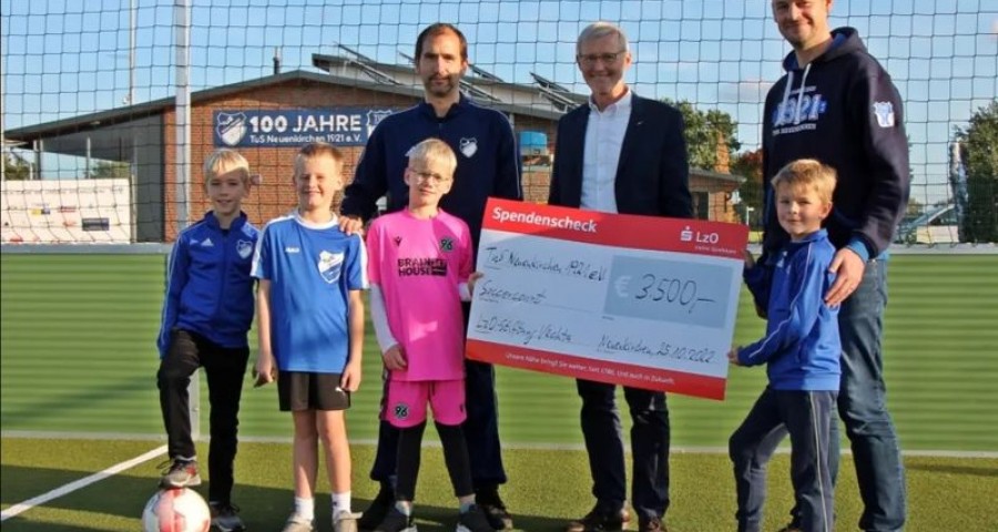Über einen warmen Geldregen durfte sich nun der TuS Neuenkirchen freuen. Die LzO-Stiftung für den Landkreis Vechta überreichte in Person ihres 1. Vorsitzenden Alfred Müller einen symbolischen Scheck in Höhe von 3500 Euro.