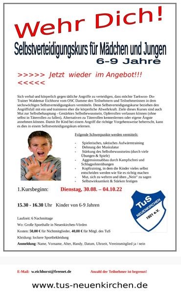 Nach den Sommerferien werden wieder neue Kurse angeboten, für Jungen und Mädchen und jetzt auch für Frauen.