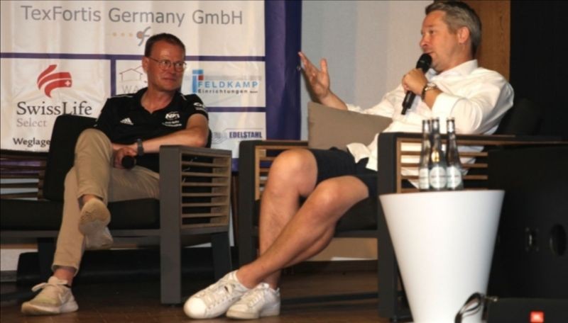 Er selbst spielte in seiner Profi-Karriere für sechs Klubs. „Ich war aber kein Wandervogel wie Ansgar“, so Maul. Gemeint war natürlich Ansgar Brinkmann und nicht Neuenkirchens Bürgermeister Ansgar Brockmann, der in Reihe eins aufmerksam zuhörte. Zum Thema Trainer sagte Maul: „Sie müssen heute vor allem Menschenfänger sein und die Gruppe führen.“ Mit Blick auf die Zeit nach der Karriere sagte Maul, der mit 17 eine Lehre zum Kfz-Mechaniker gemacht hat: „Ich kann jedem nur raten, sich früh Gedanken zu machen. Es ist sehr wichtig, einen Plan B zu haben. Als Profi hast du Zeit genug, etwas zu entwickeln.“ Er selbst habe sich rechtzeitig mit Themen wie Marketing und Management auseinandergesetzt.