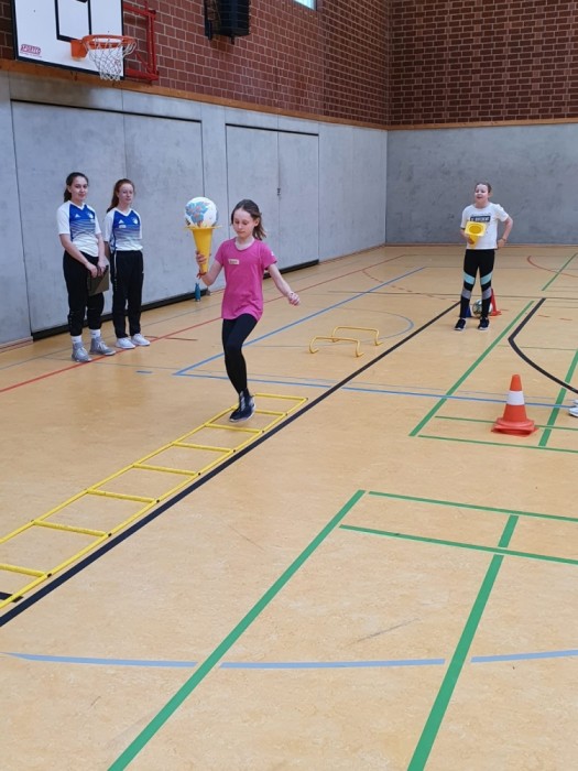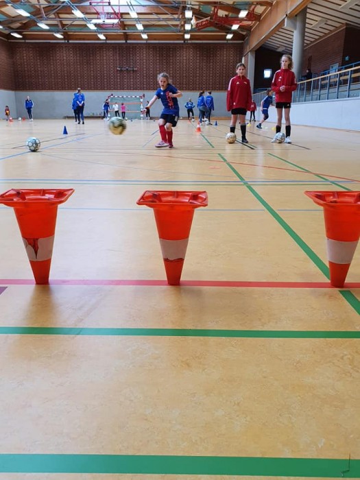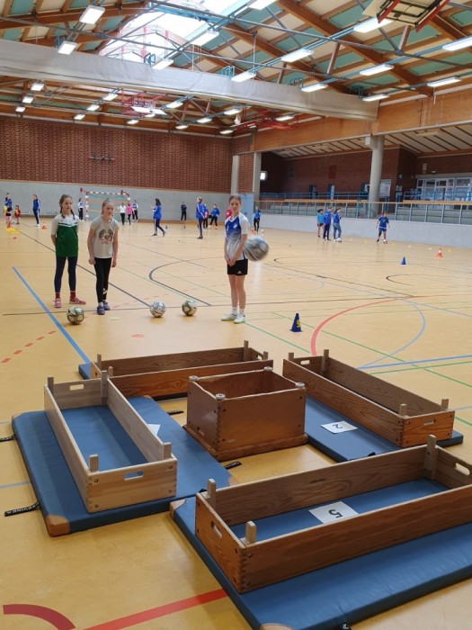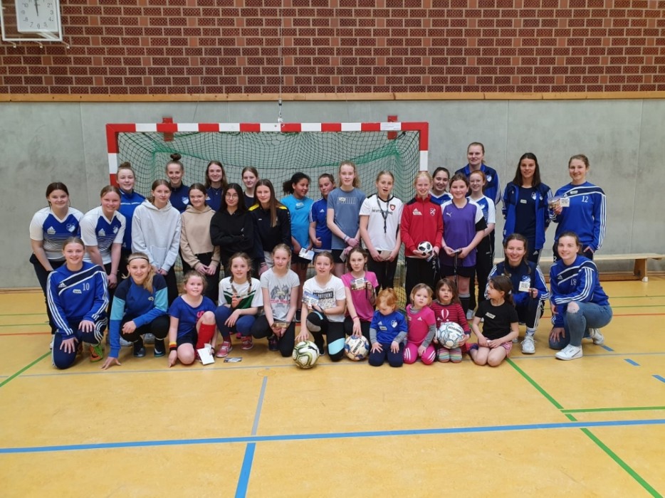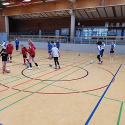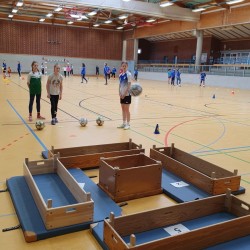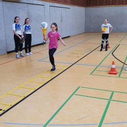 Es wurde gelupft, gedribbelt, balanciert. Begleitet von Spielerinnen der 1. und 2. Damenmannschaft, sowie der C-Mädchenmannschaft durchliefen die Teilnehmerinnen ein abwechslungsreiches Stationstraining.