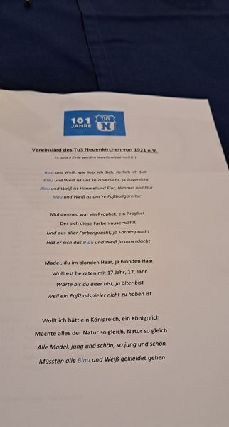 Natürlich durfte am Ende auch unser Vereinslied nicht fehlen, für die nicht ganz Textsicheren unter uns auch in schriftlicher Form.