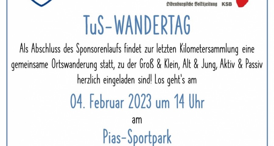 Als Abschluss des Sponsorenlaufs findet zur letzten Kilometersammlung eine gemeinsame Ortswanderung statt, zu der Groß & Klein, Alt & Jung, Aktiv & Passiv herzlich eingeladen sind!