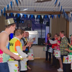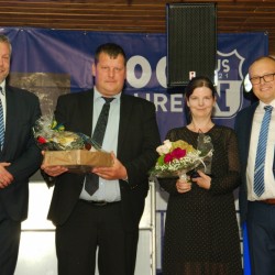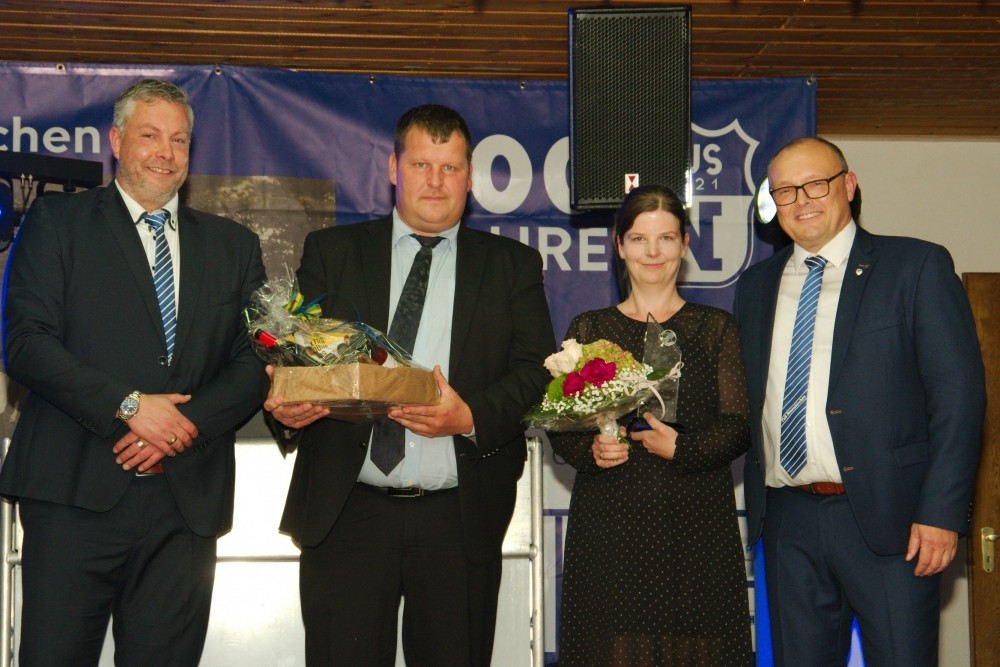 Die blau-weiße Trophäe erhielten Christian (Hexe) Hagedorn und seine Frau Danica für ihren unermüdlichen Einsatz im TuS, insbesondere beim OM-Cup 2022 im Pias-Sportpark. Der Wanderpokal der TuS-Info wurde von Ralf Feldkamp (Fello) in diesem Jahr an den Vorstand verliehen. Damit wolle sich die Redaktion des Vereinsorgans für die langjährige Unterstützung bedanken. Mit der 75. Ausgabe beenden die Macher der beliebten Vereinszeitung ihre 20-jährige Tätigkeit und hoffen, dass die TuS-Info von anderen Mitgliedern am Leben erhalten wird.