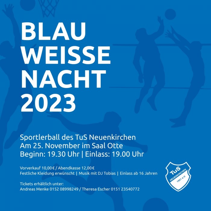 Die Blau Weisse Nacht 2023 wirft ihren Schatten voraus. Am 25.11.23 ab 19.30 Uhr ist es soweit.