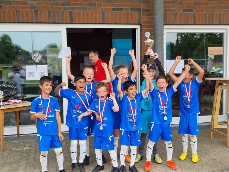 Ein großes Dankeschön geht vor allem an die Kinder, die in jeder Trainingseinheit super mitzogen und sich insgesamt sowohl fußballerisch als auch als Team toll entwickelten. Wir möchten uns aber auch ganz herzlich bei den Eltern, Großeltern, Geschwistern und Freunden der Kinder bedanken, die uns Trainer und natürlich die Kinder super unterstützten. Ohne deren Einsatz wäre eine solch erfolgreiche Saison, die am gestrigen Sonntag mit dem Turniersieg (ohne Gegentor!) beim Artland-Cup in Badbergen noch gekrönt wurde, nicht möglich gewesen.
