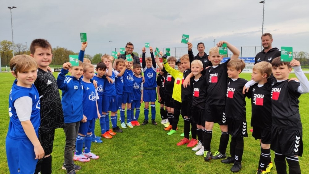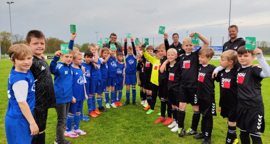 Vor dem gestrigen Punktspiel der beiden 1. F-Jugend-Mannschaften zwischen dem TuS Neuenkirchen und SW Bakum zeigten die jungen Kicker beider Teams die grüne Fair Play-Karte an alle Eltern, Großeltern und weiteren Zuschauern.