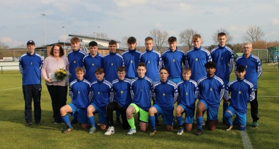 Die 1. B-Jugend der JSG Neuenkirchen-Vörden bedankt sich bei der LBD Damme, Südring 8, 49401 Damme für neue Aufwärmshirts. Ein besonderer Dank gilt Heike Koop von der LBD, die die Shirts vor dem Punktspiel gegen Lutten (1:1) an die Mannschaft überreicht hat.