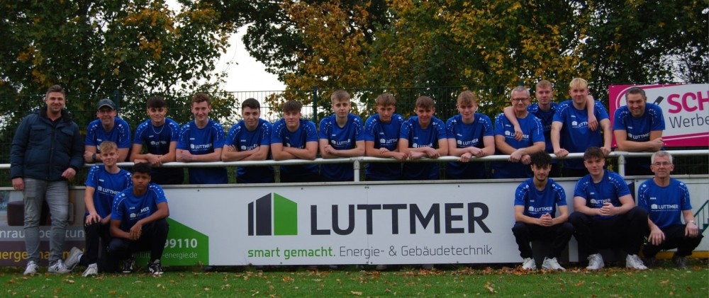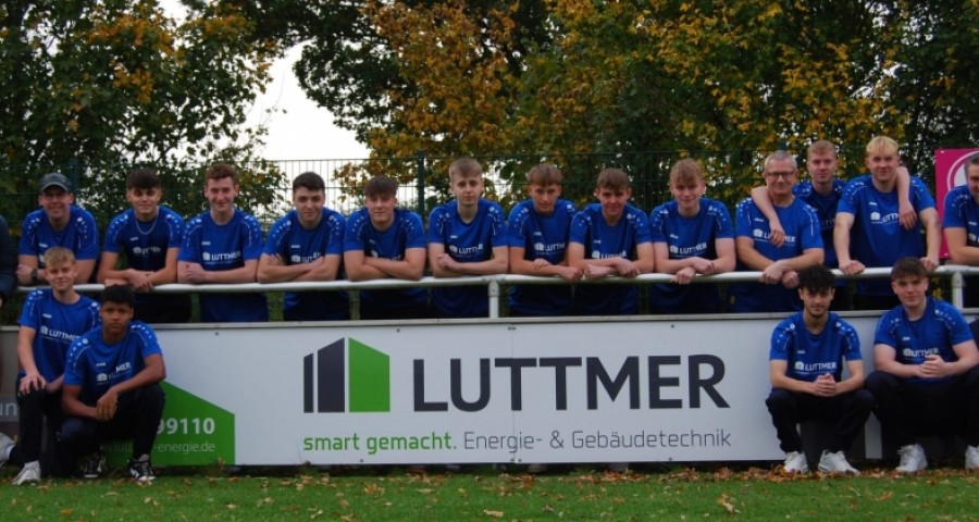 Die A-Jugend der JSG Neuenkirchen-Vörden bedankt sich für neue Aufwärmshirts bei der Firma