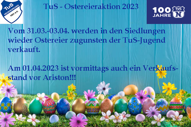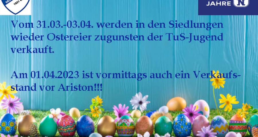Vom 31.03.-03.04. verkaufen Kinder und Jugendliche in vielen Siedlungen in Neuenkirchen Ostereier zugunsten der TuS-Jugend.
