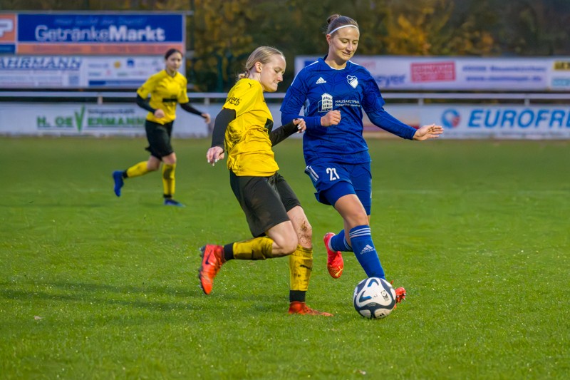 Sophie Borcherding fühlt sich auf den vorderen Positionen zuhause, allerdings wurde sie in der laufenden Spielzeit zumeist auf der Linksverteidiger-Position eingesetzt – eine taktische Umstellung ihres Trainers Udo Rabe-Konermann. Doch gegen Ohmstede durfte sie wieder ihren gewohnten Platz in der Dreier-Sturmreihe neben Sophia Engbarth und Janina Jendrzejewski einnehmen, mit denen sie im Spiel permanent die Positionen tauscht. „Endlich wieder vorne“, sagt Sophie Borcherding – und weiter: „Unbewusst macht man sich dann schon ein bisschen Druck, dann auch zu treffen.“ Das gelang fulminant.