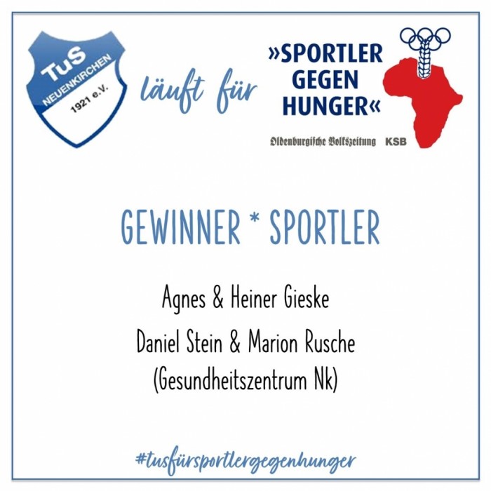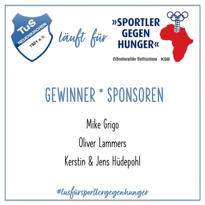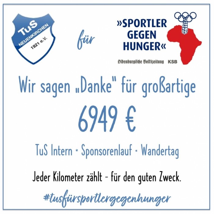An alle Sportler, Sponsoren & Helfer für die Unterstützung der Aktion "TuS läuft für Sportler gegen Hunger".