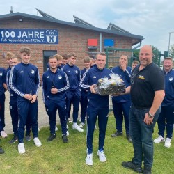 für die neue Ausstattung bedanken. Der Mannschaft wurde ein Trainingsanzug, ein Trainingsshirt, ein Poloshirt und eine Sporttasche zur Verfügung gestellt.