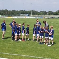 Zunächst erhielten die E1 für den gemeinsamen Staffelsieg mit der JSG Holdorf Langenberg ihre Medaillen und die Urkunde aus den Händen von Kai Westerhoff.